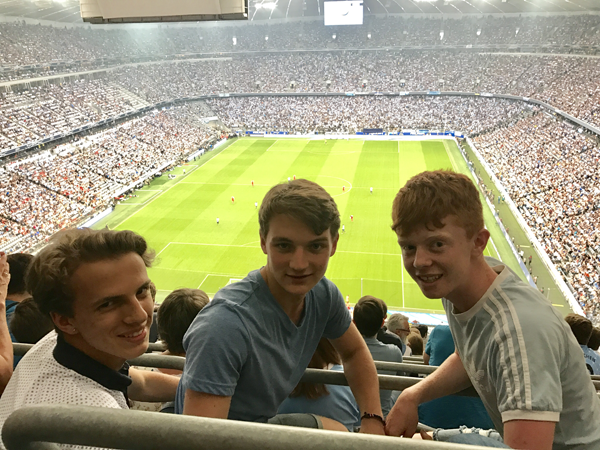 We got in contact with Jane, and received information on a family living in Dachau, just outside Munich. There was no pressure on me to do it, we said we'd think about it and get back to her. I just couldn't not take up the opportunity to go, and I decided to do it. We had Julian in our house for the month of April, and right away we got on really well. You'd be surprised how quickly you get to know someone when you live with them, and after a week or two it was as if we'd been friends for years! Julian left, and it was only a week and a half after that when it was my turn to go to Germany. I remember, on the morning of the flight, being extremely nervous, but I also remember being hugely excited. From my point of view, leaving my parents at the airport was the toughest part of the exchange, but once I got on the plane, I just knew it was going to be the best time of my life. The family met me at the airport and were extremely welcoming, friendly and overall just genuine people. It was relatively late, so we didn't do much that night other than a small tour around their beautiful town. The next day the exchange really began for me, I got to meet some of Julian's friends and on the Sunday we went to the Allianz Arena to see a match, which has always been one of my dreams, and we ended up behind the goal with the extreme fans chanting and shouting for the whole match! It was definitely one of the best experiences of the exchange.